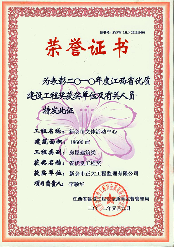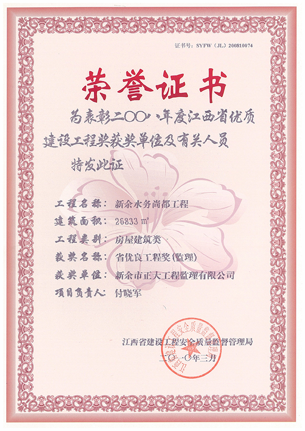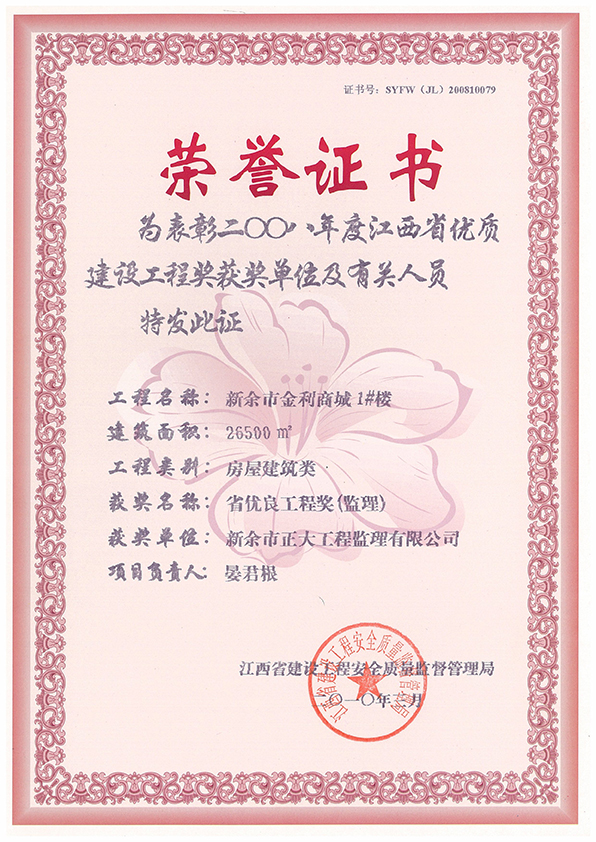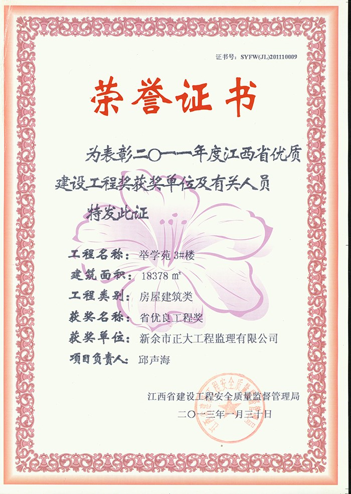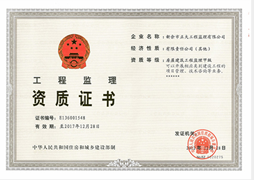 新余市正大工程監(jiān)理有限公司依托新余市建筑設(shè)計(jì)院,于1995年11月成立,是新余市開(kāi)展監(jiān)理工作最早的監(jiān)理單位,本公司具有建設(shè)部核發(fā)的房屋建筑工程甲級(jí)監(jiān)理資質(zhì)、市政公用工程乙級(jí)監(jiān)理資質(zhì)、國(guó)家人防辦核發(fā)的人防工程監(jiān)理乙級(jí)資質(zhì)。我公司始終堅(jiān)持“客戶(hù)至上、質(zhì)量第一、信守合同”的經(jīng)營(yíng)理念;追求“為社會(huì)創(chuàng)造價(jià)值、為業(yè)主創(chuàng)造效益、為自身謀求發(fā)展”的經(jīng)營(yíng)宗旨;遵循“守法、誠(chéng)信、公正、科學(xué)、優(yōu)質(zhì)、高效”的工作原則,以雄厚的技術(shù)力量、完善的管理制度、豐富的監(jiān)理經(jīng)驗(yàn)、良好的企業(yè)信譽(yù)迅速成為我市監(jiān)理行業(yè)的一支新銳力量!
